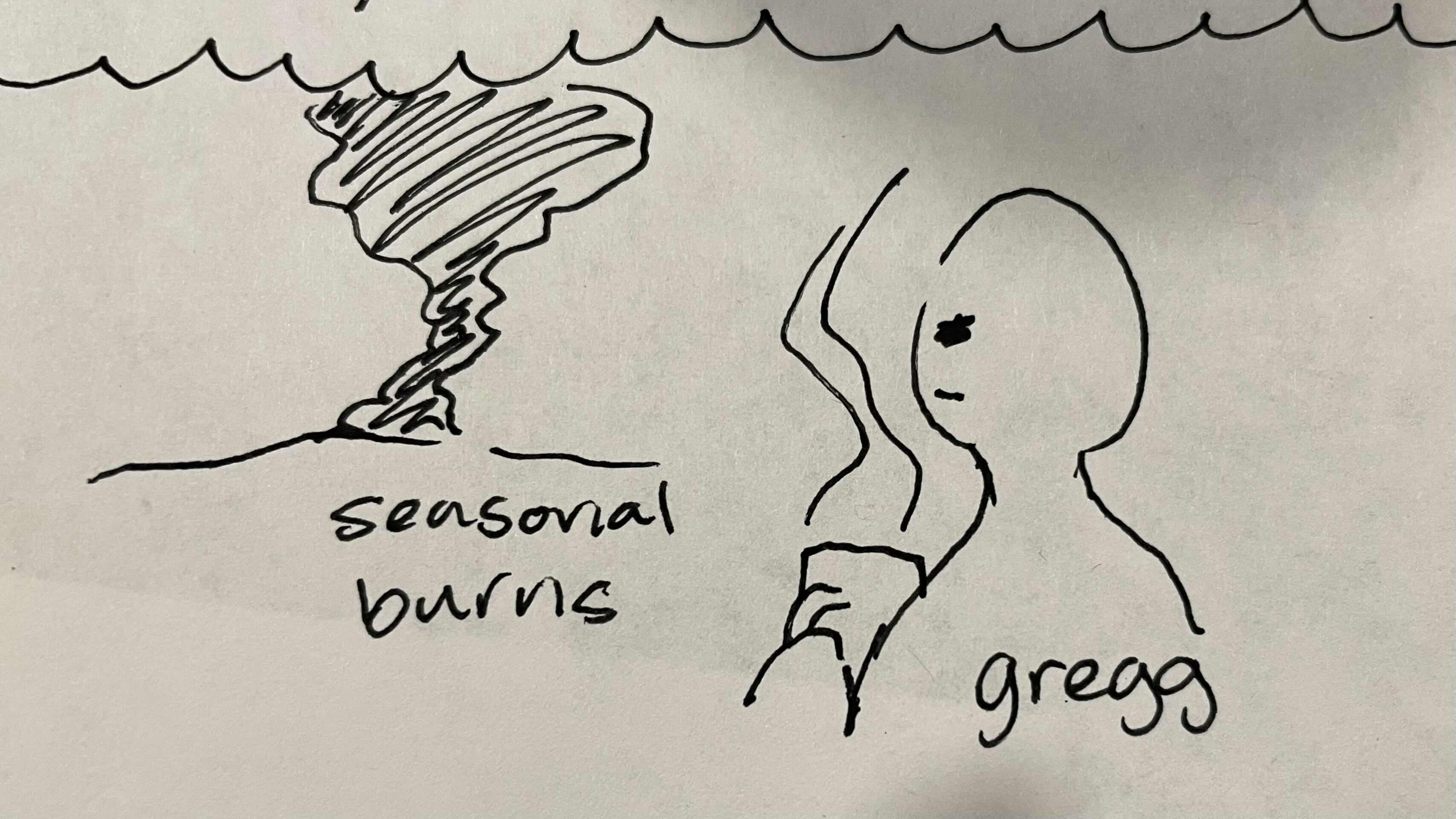 And finally south: a runnel of gray smoke; starting thin and rising upward into diffuse waves of gray—the seasonal burns make this a common sight, but isn’t there an additional malice to it now, when behind every obscured thing might hide the snarling face of a wolf?